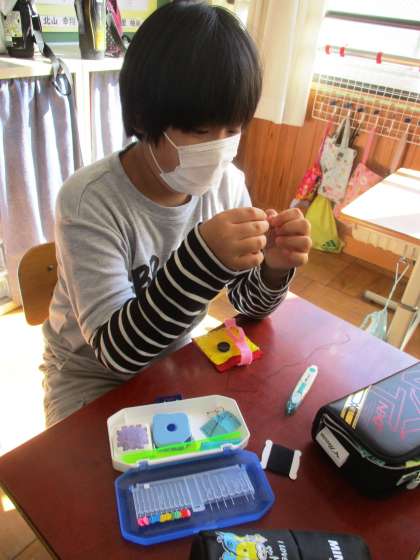 国旗やティッシュペーパー入れなど思い思いの小物を作っています。