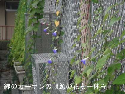 緑のカーテンのヘブンリーアサガオも一休みです。