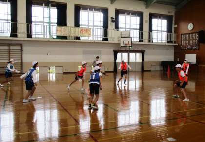 タグラグビーをしています。ルールにも慣れ,チームで作戦を立てながら活動しています。