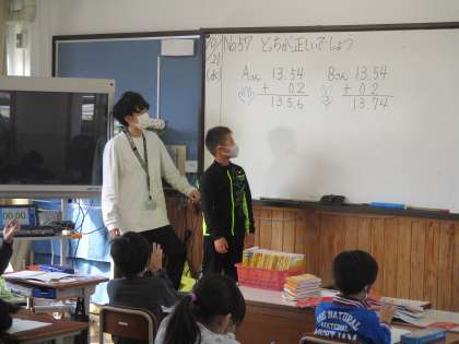 小数の筆算は,どう書けばいいかな?話し合いながら学習しました。
