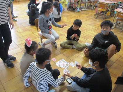 教室で遊ぶグループはカードゲームやハンカチ落としなどをして楽しみました。