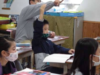 日なたと日かげの学習をしています。日なたや日かげができる条件や、太陽の位置と影のでき方について勉強をしました。みんなしっかり自分の考えを発表できていましたね。
