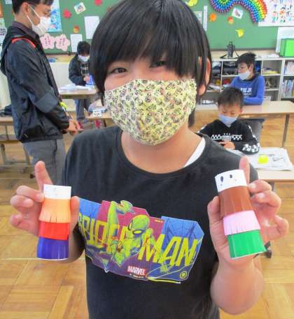 みのむしを作りました。それぞれかわいい表情の作品ができました。