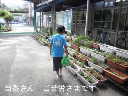 今日も,朝から環境委員会の6年生が,暑い中黙々と当番活動(水やり)をしてくれています。