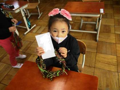 夏まで育てた朝顔のつるでリースを作りました。