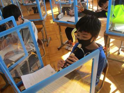 リコーダーのテストのあと,『雨のおと』という曲を,音のひびきの美しさに気をつけて聞きました。