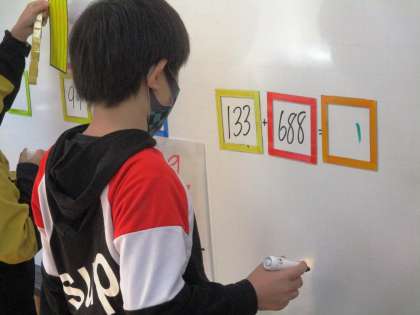 たし算に取り組みました。それぞれの進度に合わせて,どんどん難しい問題に挑戦しています。