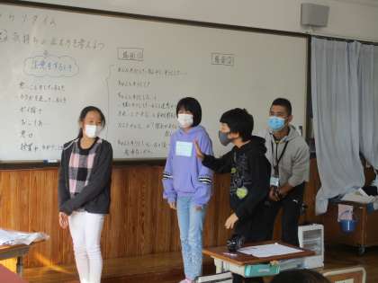自分も相手も大切にするような伝え方をロールプレイをしながら考えました。今週は,たてわりの日「にこなかハッピーDAY」もあります。友だちだけでなく,ちがう学年の子どもたちに注意するには,どのように伝えるといいかな?という視点でも考えました。