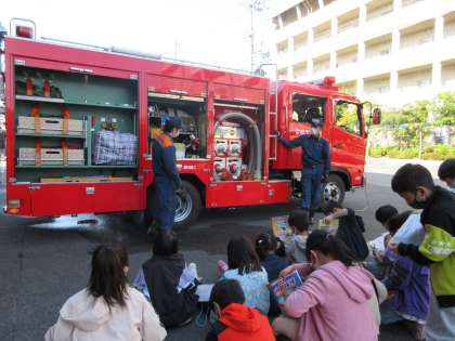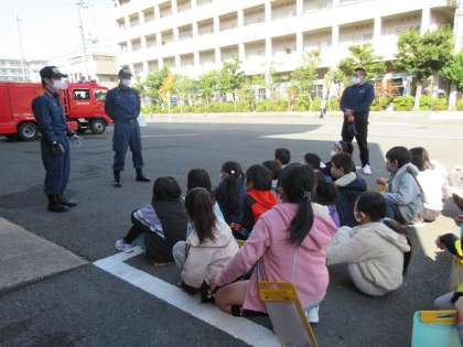 消防署への行き帰りも安全に気をつけて,2列で上手に歩いていました。