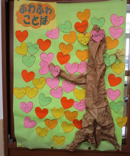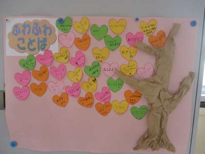 みんなで作った『ふわふわことばの木』。どんどん大きくなっていきますように。