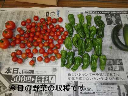 暑い中でしたが,今日は大量に野菜を収穫しました。ミニトマトや普通のトマトがこれから収穫最盛期をむかえます。