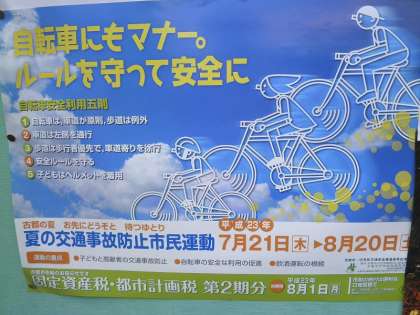 夏休みに入ると,自転車に乗って遊びに行く機会が多くなってきます。交通の決まりをしっかり守り,事故にあわないように安全に乗りましょう!