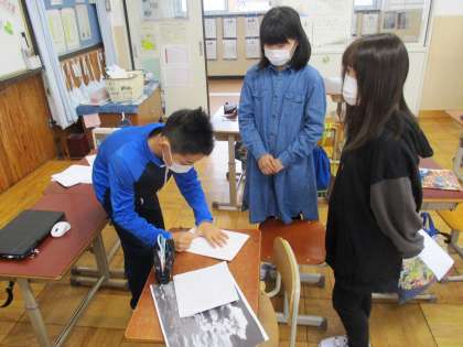 6年生は金曜日に中間発表をします。どのように伝えたら伝わりやすいか工夫しながら,発表練習を進めています。