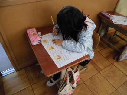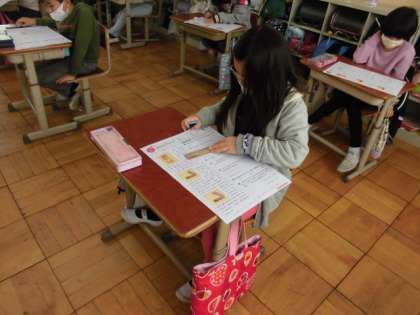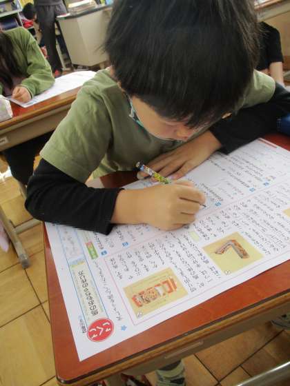 国語のテストをしました。みんな集中して問題に取り組んでいました。