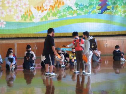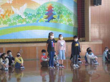 お隣の国について調べたことを4年生に発表して聞いてもらいました。劇を入れたり,クイズを出したり,工夫しながら大きな声でしっかりと伝えることができました。