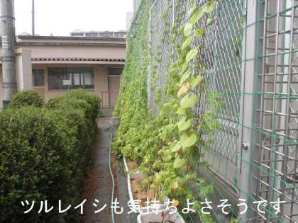 さて,学校の草花,野菜は久しぶりの雨で気持ちよさそうです。やはり水道からの水まきより,自然の雨の方がいいのでしょうか?生き生きしています。