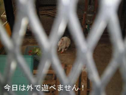 飼育小屋のウサギたちにとっては,外に出られなくてちょっと残念なようです。