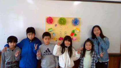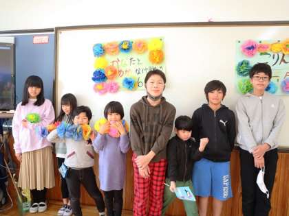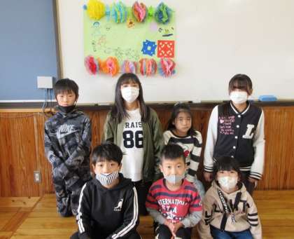 できあがった『にこなかペーパー』を掲示して,グループ毎に記念撮影をしました。
