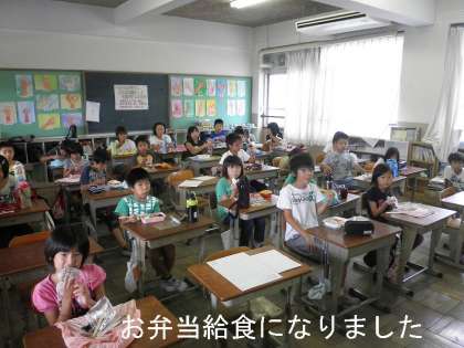 そして,給食時間は,持参のお弁当給食になりました。1組も2組もいつになく楽しそうに食べていました。