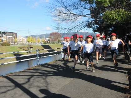 晴天に恵まれて持久走大会を実施しました。それぞれ,自分の記録に挑戦しながらがんばりきることができました。