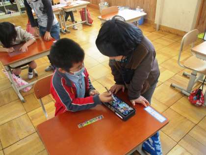 本を返したいけれどどこに返したらよいか分からない時,色鉛筆がないので貸してもらいたい時,を例にロールプレイをしながら考えました。
