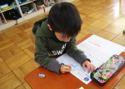 テストに取り組んでいます。しっかりていねいな字で書いています。宿題でお直しした漢字はしっかり書けているかな?はねやはらいなども意識して覚えていこうね。