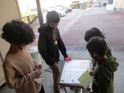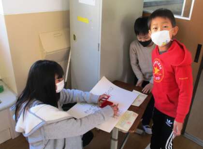 今日は1年生です。クイズを解いて委員会の人にハンコを押してもらいながら回りました。「全問正解〜!」とみんな楽しみながら回ることができました。