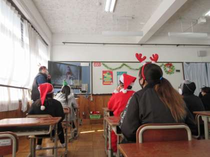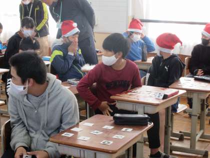 今日は,ALTのデイビッド先生の来校日でした。3年生から6年生の児童が,クリスマスイングリッシュを楽しみました。クリスマスの歌を歌ったり,アメリカのクリスマスについてデイビッド先生に教えていただいたりしました。また,クリスマスのビンゴでは「リーチ!」「ビンゴ!」と大盛り上がりでした。