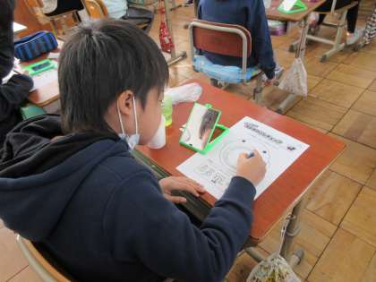 4年生は,歯磨き指導で,プラークテスターを使い,自分の歯の汚れ具合を確かめたり,正しい歯磨きの仕方を学習したりしました。虫歯にならないように,正しい歯磨きを心がけましょう。