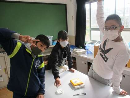 電子てんびんの使い方の学習をしました。
