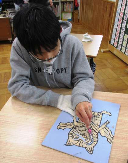 こんな動物がいたらいいなとイメージしながら木版画にしました。