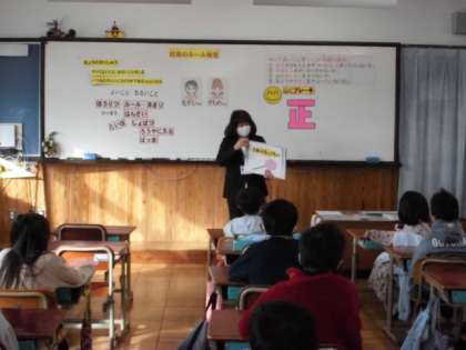 警察のスクールサポーターの方に来ていただき、やってよいこと、悪いことを知り、いつも正しい判断のもと行動がとれるように非行防止教室をしていただきました。判断のポイントとして『自分がされたら、傷ついたり、困ったりしないか』『大切な人をがっかりさせないか』『人に迷惑をかけないか』『法律やきまりを破っていないか』の4つの指標があることを学ぶことができました。ぜひ、ご家庭でも非行防止教室で学んだことを話していただけたらと思います。