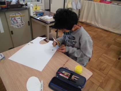 紙版画の土台づくりをしました。はさみを使って紙を上手に切っています。完成が楽しみですね。