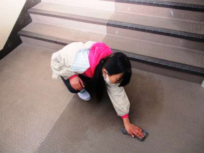 新年が明け,初めてのそうじをしました。ピカピカにして,気もちも新たにがんばります。冷たい水で,手が凍えそうになりながらも,がんばったことに誇らしげな表情が印象的でした。