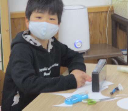 画用紙を使って,雪だるまを作りました。