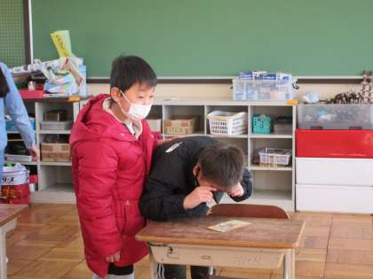 4年生は「視覚障害」について知る学習をしています。視覚狭窄という視野の広さに関わる障害についての学習では,体験したことを通して感じたことを交流しました。