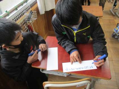 「ナイス!」「ドンマイ!」「次はできるよ!」など,みんなで話し合いながら考えました。チームワークを高めていけたらいいですね。