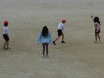 みんなで大縄飛びをしました。上手に飛ぶことができました。