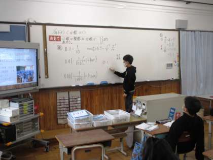 小数を分数で表すにはどう考えたらよいかについて,話し合いながら学習しました。