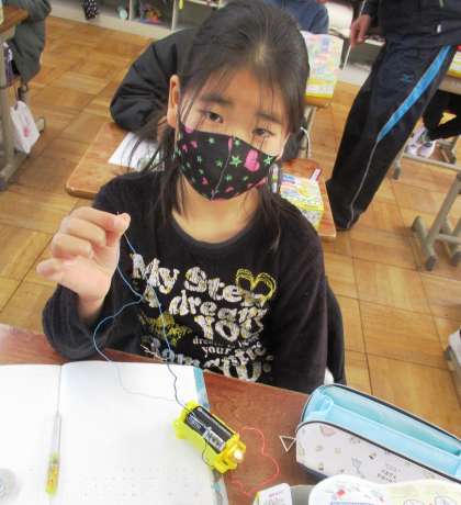 実際につないで,電球に明かりを灯してみました。