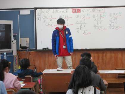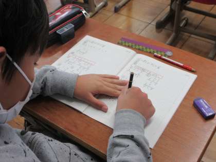 4年生は,小数のかけ算を繰り返し計算して,正確に計算できるように練習をしています。小数点を打つ場所が難しいので,間違えないように確かめながら進めています。