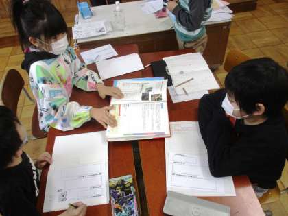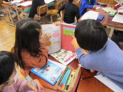 学習したことを活かして,だれもが楽しめる『おにごっこ』をグループで考えました。図書やコンピュータを使って調べながら,意見を出し合いました。