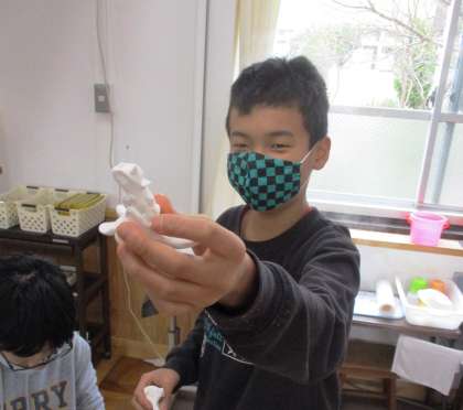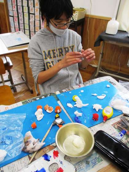 4日〜7日まで京都市京セラ美術館で行われる『小さな巨匠展』に出品する作品を作っています。今日は,紙粘土で動物を作りました。
