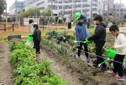 朝のランニングをした後,畑の水やりをしました。大きくなあれ!