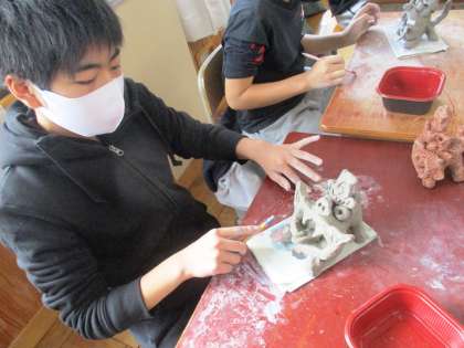 昨日に引き続き,卒業制作をしました。それぞれの思いのこもった,個性豊かなシーサーができました。