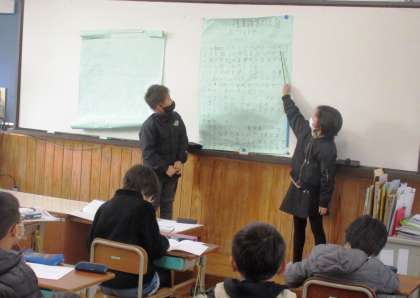 どのようなところに気をつけて発表したらよいのか,話し合い確認しながら練習しました。