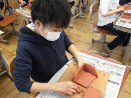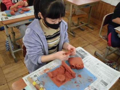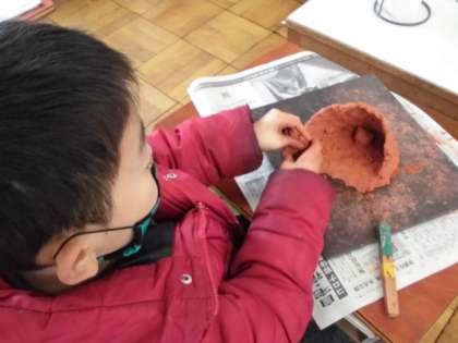粘土を使って「わたしのデザインしたおうち」を作っています。みんなそれぞれ工夫をしています。