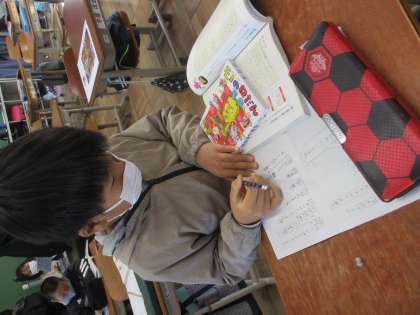 推薦したい本を選び,構成を考えています。お互いに本の紹介をしあい,読書活動がより充実したものになるといいですね。