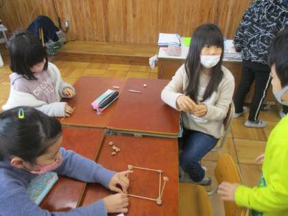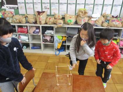 粘土とひごを使ってはこの形を作りながら,頂点や辺の数を確認しました。
