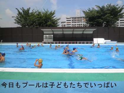 この蒸し暑さには,プールに入ることが一番いいようで,プールは子どもたちで満員,大人気です。